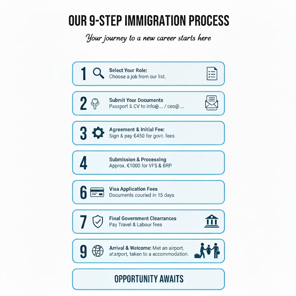 Step-by-step guidance designed to simplify your work permit application, ensuring clarity and compliance with European policies.